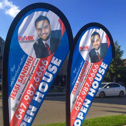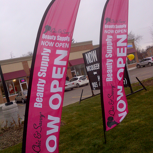 Enhance your location’s visibility with custom flag banners in GTA. Ideal for attracting customers from a distance, our flags are lightweight and portable, making them a versatile choice for effective advertising. Whether you need to promote a special event, grand opening, or ongoing sales, our flags are designed to capture attention and drive traffic to your business.